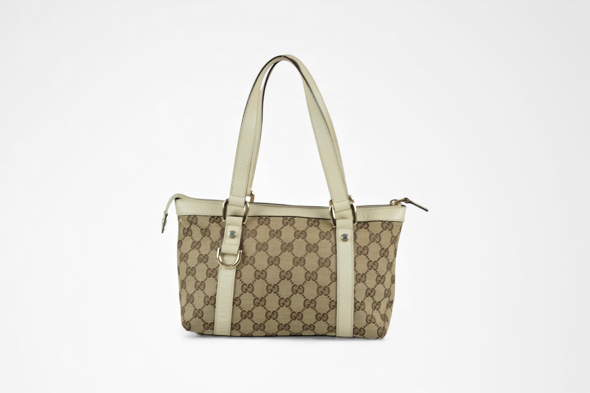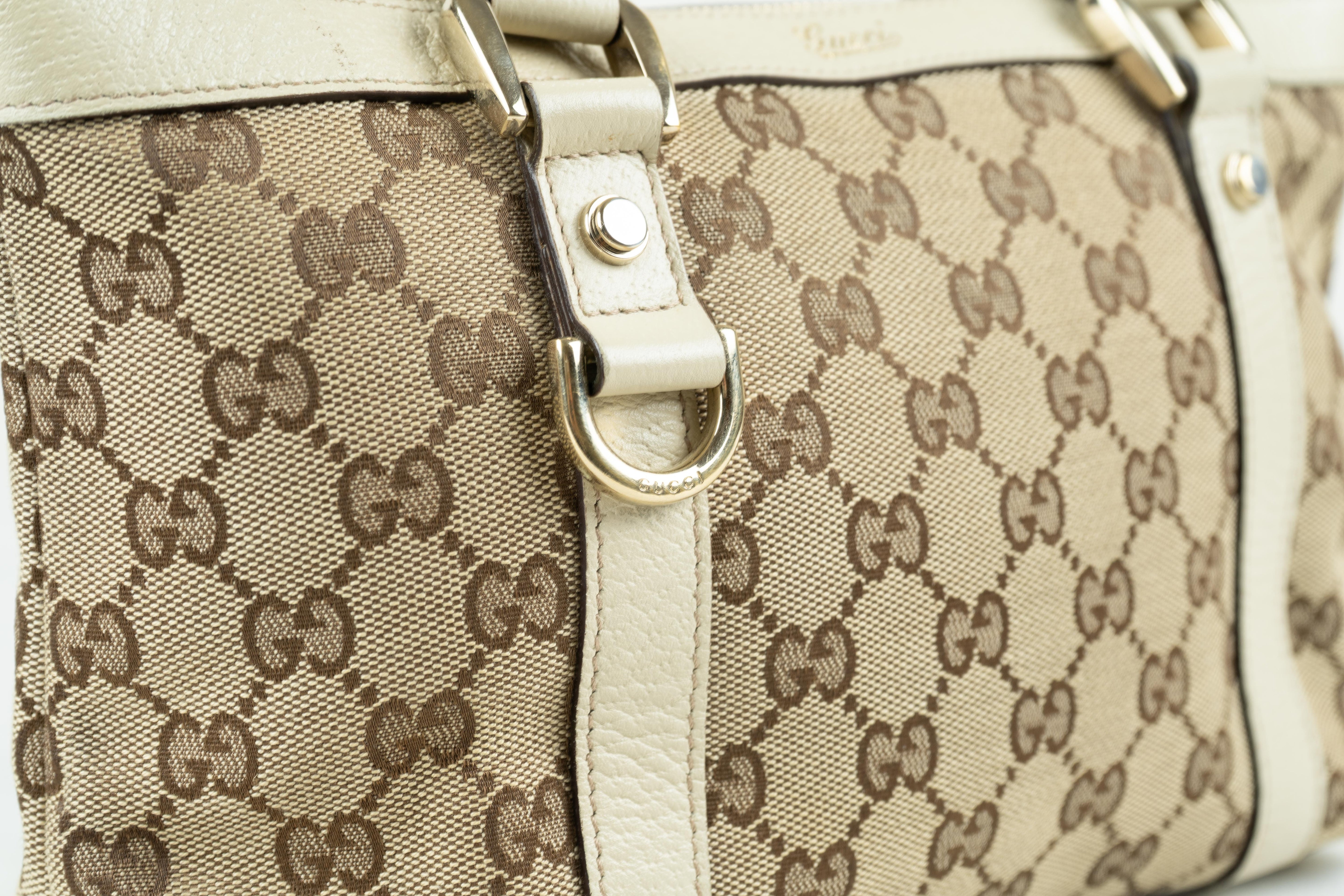 Gucci Abbey D-Ring Tote Bag – GG Canvas & White Leather