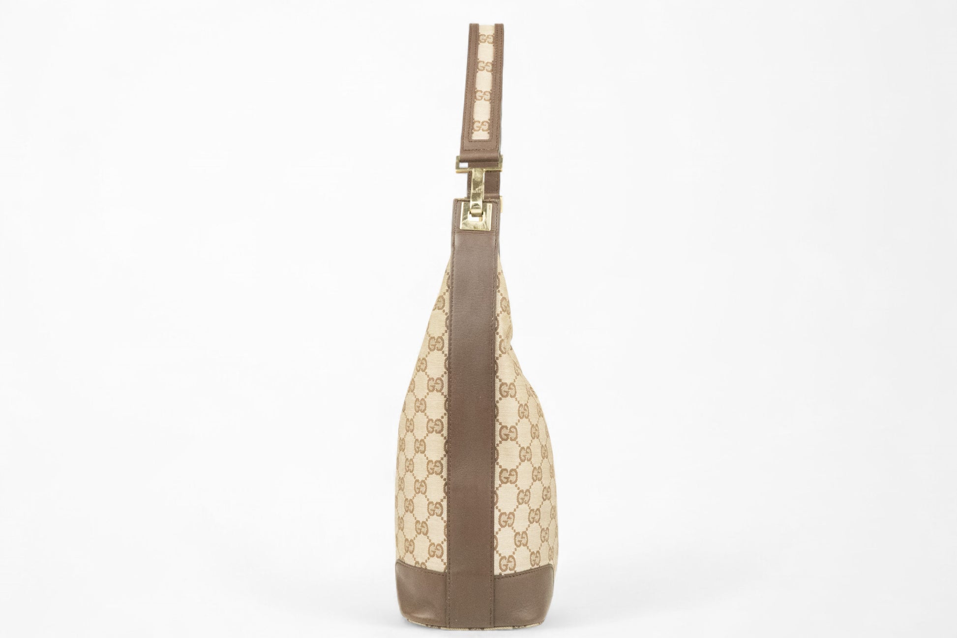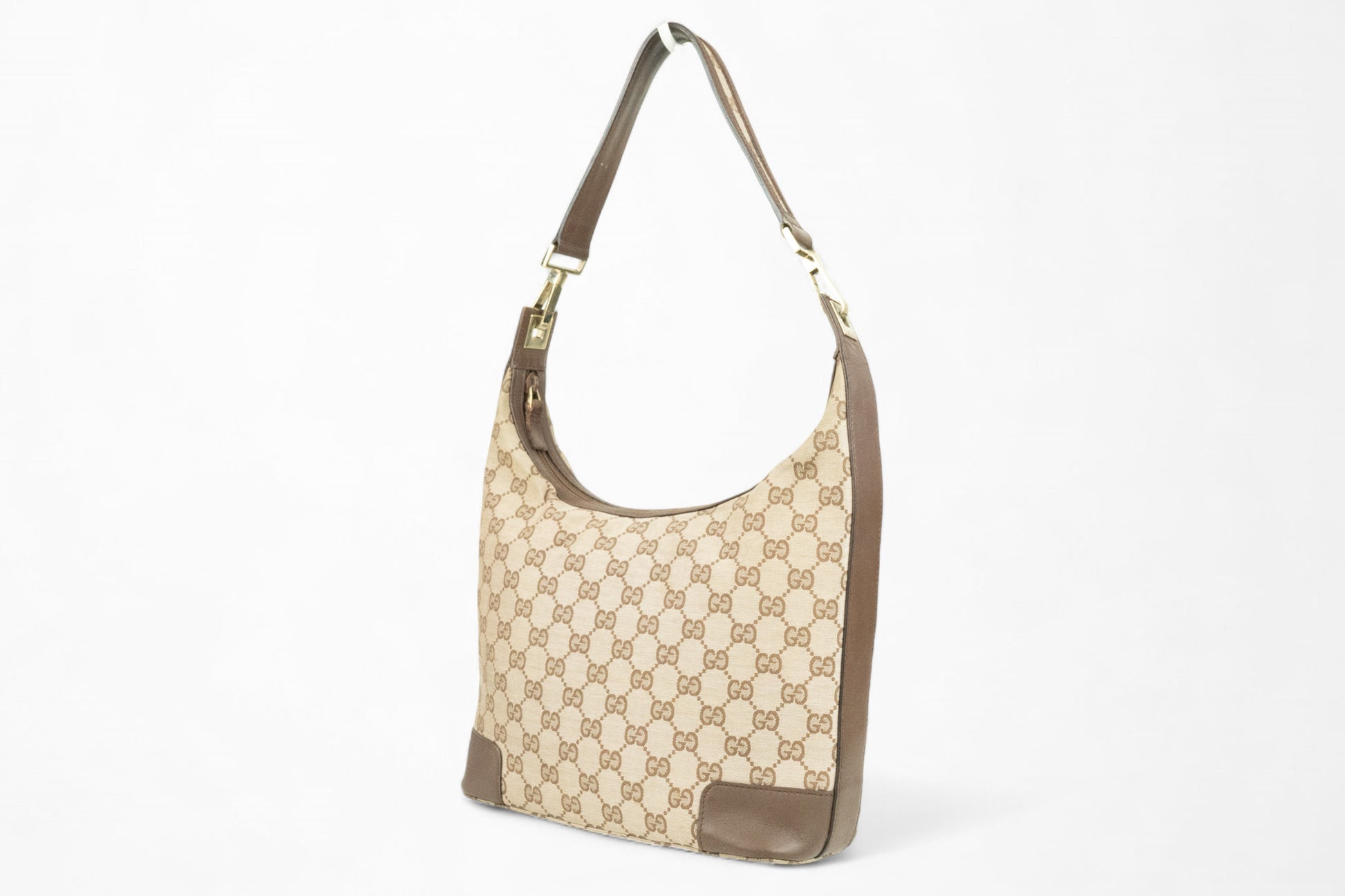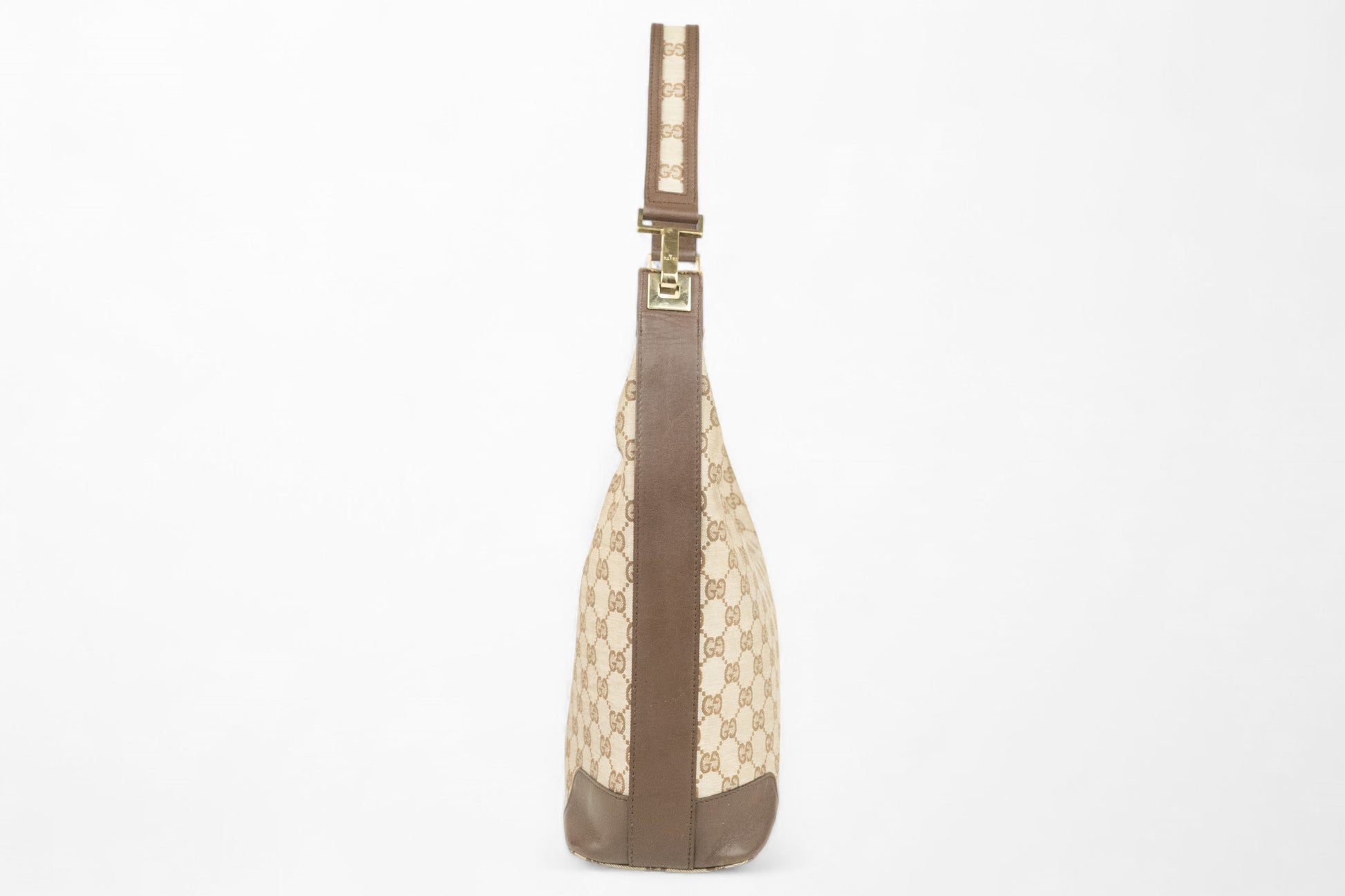 Vintage Handbag in Gucci Beige canvas with brown strap.