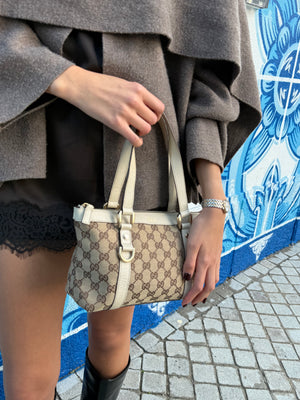 Bolsa Gucci Abbey com Argola em Ré Pequena – Lona GG